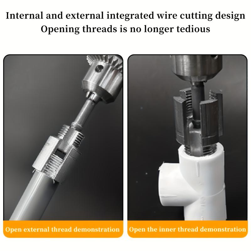Upgrade your plumbing toolkit with this versatile PVC Pipe Threading Tool Kit. Designed for both inner and outer pipe threading, this dual-function set is perfect for DIY home repairs, renovation projects, and professional use. Compatible with most electric drills, it offers smooth, fast, and precise threading—making your work easier than ever.
